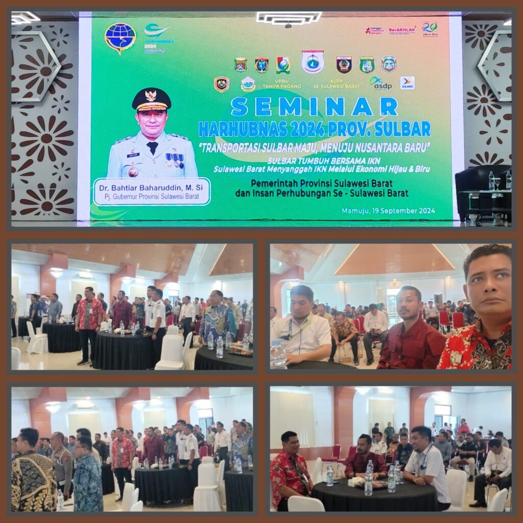 Seminar Harhubnas 2024 memiliki tema “Transportasi Sulbar Maju, Menuju Nusantara Baru” Sulawesi Barat Tumbuh Bersama IKN, Sulawesi Barat Menyanggah IKN Melalui Ekonomi Hijau dan Biru”.