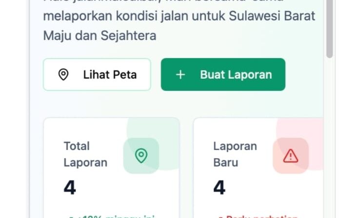 Pemprov Sulbar juga menyiapkan laman khusus berbasis web : https://app–jalan-ma-76c7c030.base44.app, untuk masyarakat yang lebih nyaman melapor melalui handphone atau komputer.