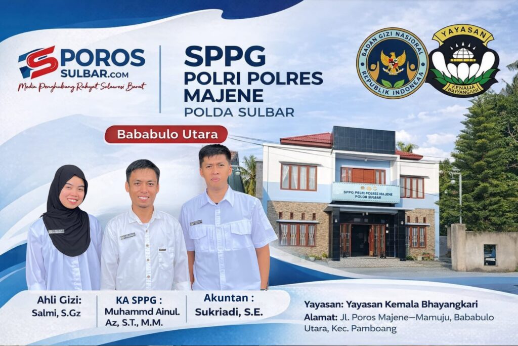 SPPG Polres Majene Polda Sulbar Bababulo Utara berlokasi di Jl. Poros Majene–Mamuju, Bababulo Utara, Kecamatan Pamboang, dan menjadi salah satu garda terdepan Polri dalam mendukung peningkatan gizi masyarakat.