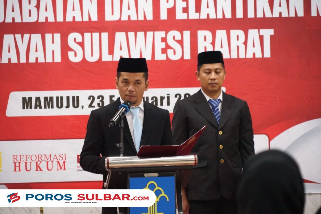 MAMUJU – Kakanwil Kemenkum Sulbar, Saefur Rochim melantik dan mengambil sumpah jabatan 9 (Sembilan) orang Notaris baru di wilayah Provinsi Sulawesi Barat di Aula Pengayoman, Senin (23/2/2026).
