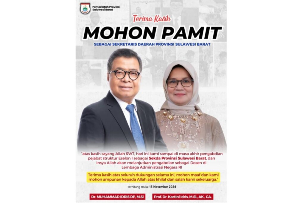 “Terimakasih mohon pamit sebagai sekretaris daerah provinsi Sulbar selama menjabat,” kata Idris, Jumat 15 November 2024.