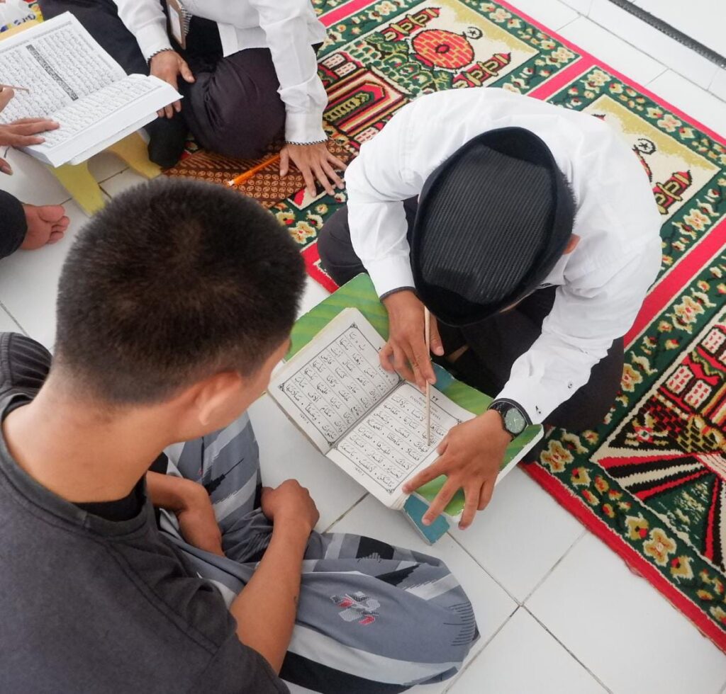 Mamuju,–Warga Binaan Rumah Tahanan Negara (Rutan) Kelas IIB Mamuju antusias dalam mengikuti pembinaan kerohanian yang dilaksanakan bekerjasama dengan Penyuluh Agama Islam Kementrian Agama (Kemenag) Kab. Mamuju. Salah satunya dengan kegiatan belajar mengaji Al – Qur’an dan Iqra yang merupakan program rutin setiap pekan dilaksanakan seperti pada kegiatan yang berlangsung di Masjid At-Taubah, (09/07).