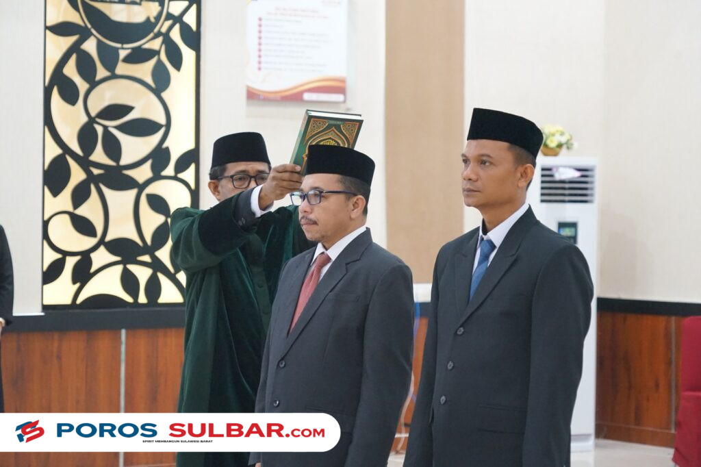 Mamuju — Kepala Kantor Wilayah Kementerian Hukum Sulawesi Barat, Saefur Rochim melantik dan mengambil Sumpah Jabatan, Asri sebagai Pejabat Pergantian Antar Waktu (PAW) Anggota Majelis Pengawas Daerah (MPD) Notaris untuk Kabupaten Mamuju, Kabupaten Mamuju Tengah, dan Kabupaten Pasangkayu periode 2023–2026, di Aula Pengayoman Kanwil Kemenkum Sulbar, Senin (9/2/2026).