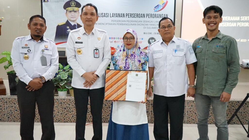 Dalam kesempatan itu, Pamuji selaku Kepala Kantor Wilayah Kementerian Hukum dan HAM Sulawesi Barat memberikan langsung sertifikat pendaftaran perseroan perorangan kepada peserta yang telah melakukan pendaftaran.