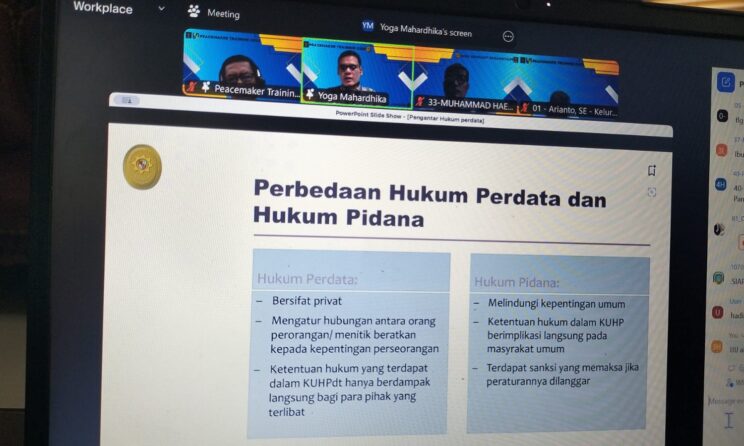 Materi yang disampaikan dalam pelatihan ini mencakup Pengantar Negara Hukum dan Pancasila, Pengantar Singkat Hukum Pidana, serta Pengantar Singkat Hukum Perdata. Kehadiran narasumber dari Mahkamah Agung RI menegaskan kualitas dan relevansi materi yang diberikan.