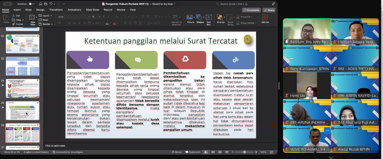 Pelatihan Peacemaker ini diharapkan dapat menciptakan Kepala Desa/Lurah yang lebih cakap dalam menyelesaikan sengketa , sejalan dengan upaya mewujudkan keadilan restoratif di wilayah Sulawesi Barat.