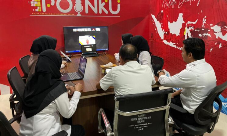Kepala Bidang Pelayanan KI, Juani hadir mewakili Kakanwil Kemenkum Sulbar, Sunu Tedy Maranto bersama jajaran secara virtual di ruang rapat Kadiv Yankum.