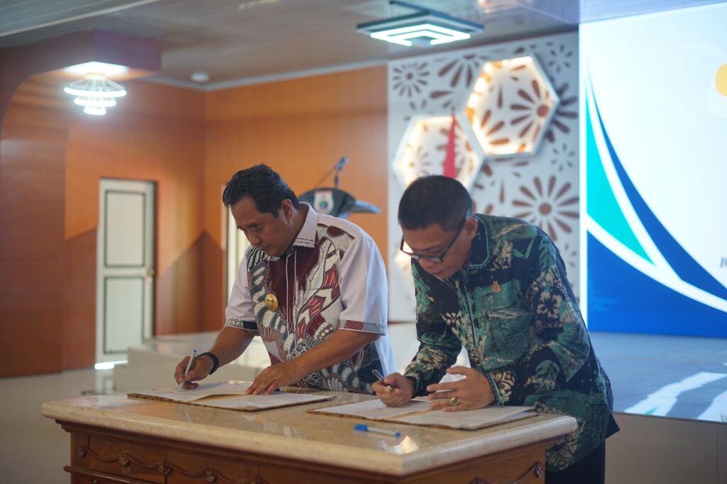 Mamuju– Penjabat Gubernur Sulbar Bahtiar Baharuddin bersama Kepala Kejaksaan Tinggi Provinsi Sulbar Andi Darmawangsa melakukan penandatangan Kesepakatan Bersama tentang Penanganan Masalah Hukum Bidang Perdata dan Tata Usaha Negara, di Graha Sandeq Komplek Rujab Gubernur Provinsi Sulbar, Jumat 1 November 2024.