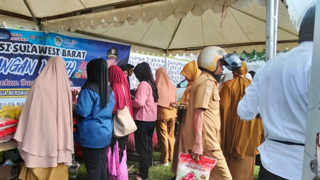 Mamuju – Pemprov Sulbar melalui Dinas Ketahanan Pangan melaksanakan Gerakan Pangan Murah (GPM) atau Pasar Murah di depan Kantor Gubernur Sulbar, Senin 7 Juli 2025.