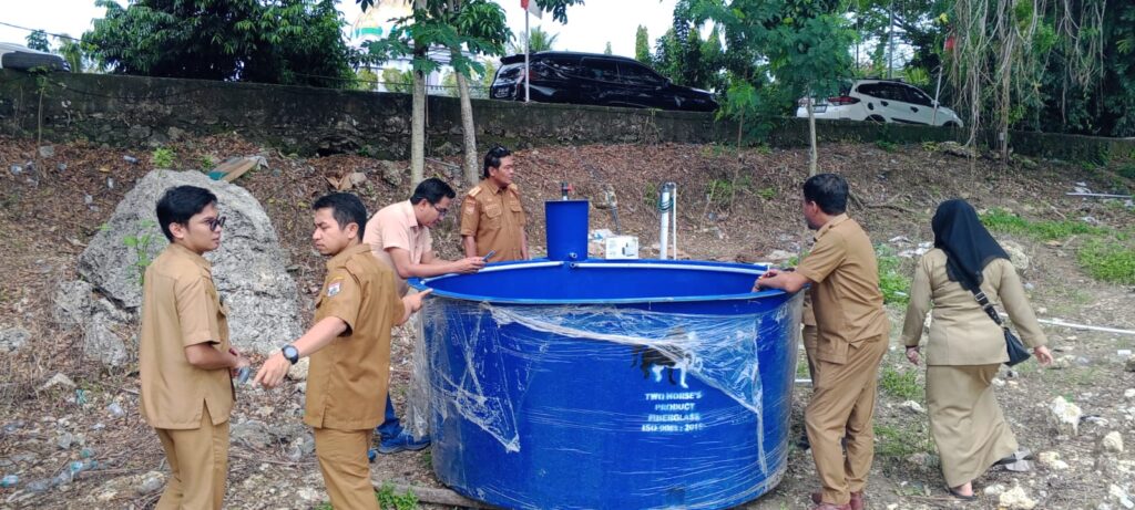 Mamuju — Dinas Kelautan dan Perikanan (DKP) Pemerintah Provinsi Sulawesi Barat melakukan pemasangan Bioflok di Kompleks Perkantoran Gubernur Sulbar, Senin (26/08/2024). Bioflok yang terbuat dari fiber tersebut digagas oleh Pj Gubernur Sulbar Bahtiar Baharuddin. Dan saat ini sudah ada dua bioflok prototype tersebut di Sulawesi Barat. Satu diantara prototype tersebut telah terpasang di taman kolam Pemprov Sulbar.