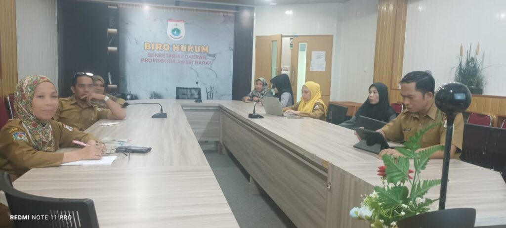 Mamuju – Biro Hukum Sekretariat Daerah (Setda) Provinsi Sulawesi Barat bagian Peraturan Perundang Undangan Kabupaten/Kota melakukan rapat Pembahasan Ranperda Kabupaten Mamuju tentang Standar Harga Satuan dan Analisis Standar Belanja TA 2026, di ruang rapat Biro Hukum Setda. Provinsi Sulbar. Selasa, 24 Juni 2025.