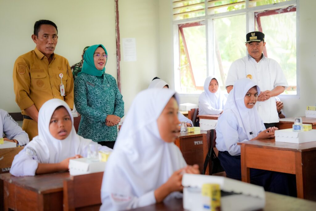 Pasangkayu — Penjabat Gubernur Provinsi Sulbar, Bahtiar Baharuddin bersama PJ Ketua Tim Penggerak PKK Sulbar Sofha Marwah Bahtiar, Pemkab Pasangkayu serta Forkopimda melakukan uji coba makan bergizi gratis di MTS Ako Kabupaten Pasangkayu, Senin 11 November 2024.