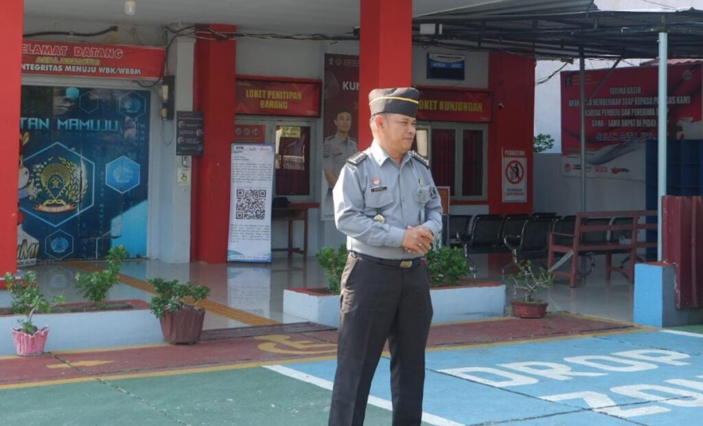 Mamuju, INFO_PAS–Rumah Tahanan Negara (Rutan) Kelas IIB Mamuju menggelar apel pagi sebagai salah satu bentuk kedisiplinan serta pemberian informasi kepada jajaran. Apel yang berlangsung di Lapangan Depan Rutan tersebut dipimpin oleh Pelaksana Harian Karutan Mamuju, Akhmad Heriansyah, A. Md. IP, S. Sos, M.A, serta diikuti jajaran Struktural dan Staf Ruran serta Pembimbing Kemasyarakatan (PK) Pos Balai Pemasyarakatan (Bapas) Polewali, (29/10).