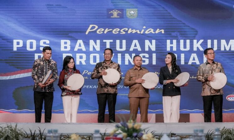 Pekanbaru, Riau – 21 Oktober 2025. Menteri Hukum Supratman Andi Agtas, hari ini meresmikan 100 persen Pos Bantuan Hukum (Posbankum) di Seluruh Desa dan Kelurahan sebanyak 1.862, di Provinsi Riau. Posbankum adalah wadah bagi masyarakat desa/kelurahan untuk mendapatkan layanan informasi/konsultasi, bantuan hukum non litigasi lainnya/advokasi, penyelesaian sengketa/konflik melalui mediasi oleh Paralegal dan Kepala Desa/Lurah sebagai Juru Damai, dan layanan rujukan advokad baik probono maupun Organisasi Bantuan Hukum.