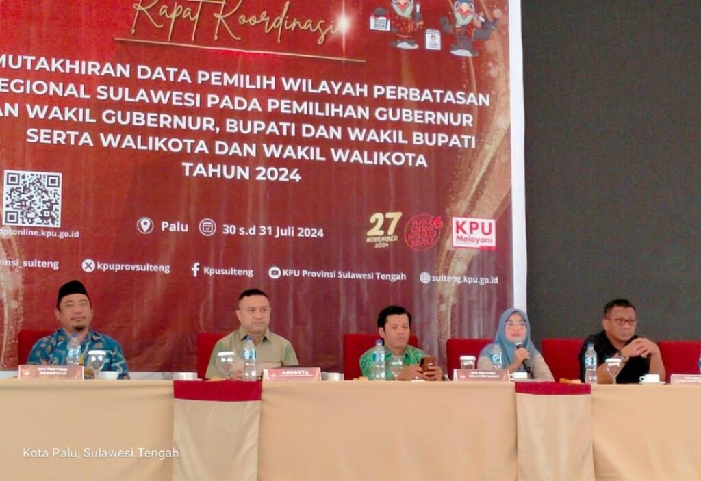 MAMUJU, KPU Sulbar — Komisi Pemilihan Umum (KPU) Provinsi Sulawesi Barat menghadiri Rapat Koordinasi Pemutakhiran Data Pemilih Wilayah Perbatasan Regional Sulawesi pada Pemilihan Gubernur dan Wakil Gubernur, Bupati dan Wakil Bupati, serta Walikota dan Wakil Walikota Tahun 2024 yang digelar di Palu, tanggal 30 hingga 31 Juli 2024.