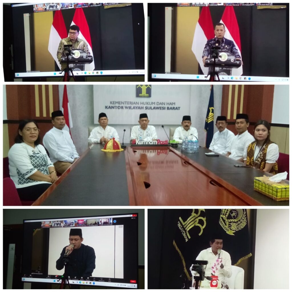 Mamuju – Kepala Divisi Pemasyarakatan Sulawesi Barat Robianto beserta jajaran mengikuti acara Pembukaan Rangkaian Kegiatan Peringatan Hari Bakti Pemasyarakatan Ke-60 yang dirangkaikan dengan Halal Bihalal Menyambut Ramadhan 1445 H, yang dilaksanakan secara virtual oleh Direktorat Jenderal Pemasyarakatan, Jumat (8/3/2024).