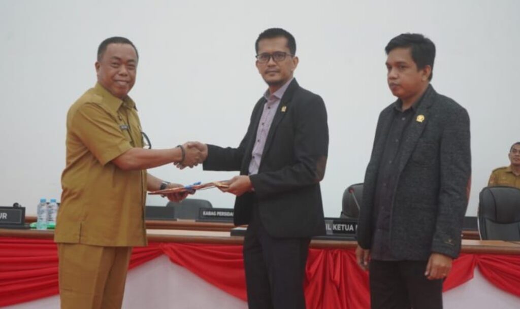 Mamuju — Mewakili Gubernur Sulbar Suhardi Duka (SDK), Asisten Pemkesra Muh Jaun menghadiri rapat paripurna dalam rangka penjelasan Gubernur terhadap Ranperda tentang penyertaan modal daerah pada PT Bank Pembangunan Daerah Sulselbar di kantor DPRD Sulbar, Senin 7 Juli 2025.