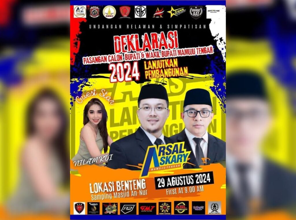 MAMUJU TENGAH – Ratusan relawan dan simpatisan dipastikan akan menghadiri acara deklarasi pasangan calon Bupati Mamuju Tengah Arsal Aras dan calon Wakil Bupati Mamuju Tengah Askary yang akan dilaksanakan pada hari Kamis, 29 Agustus 2024. Acara ini dijadwalkan akan dimulai pukul 09.00 WITA dan bertempat di lokasi strategis di Benteng, tepatnya di samping Masjid An-Nur, Mamuju Tengah.
