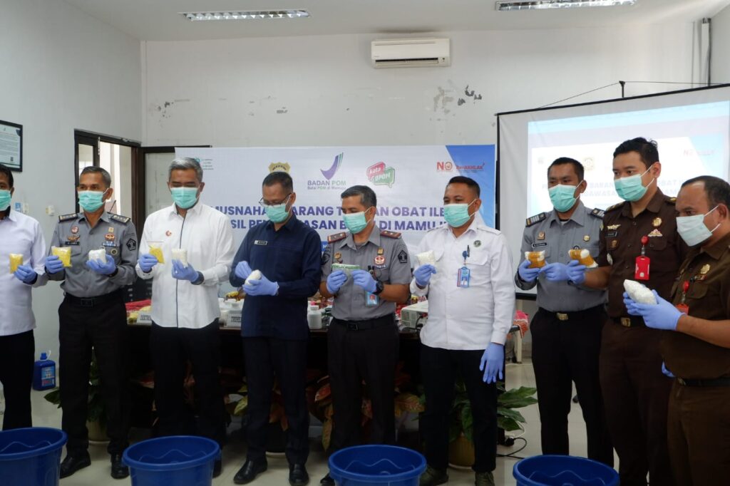 Dalam kegiatan Pemusnahan barang temuan tersebut dipimpin langsung oleh Kepala BPOM di Mamuju, Sulyanto, serta dihadiri dari instansi Kepolisian, Kemenkumham, Kejati, BNN, Dinas Kesehatan dan beberapa stakeholder lainnya.