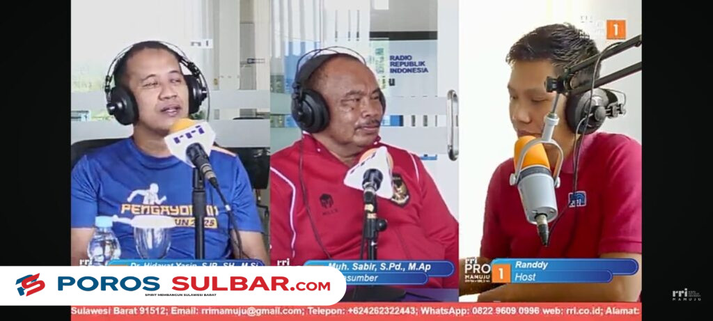 Hadir sebagai narasumber, Kepala Bidang Pengembangan dan Pembudayaan Olahraga Provinsi Sulawesi Barat, Muh Sabir, serta Kepala Divisi Pelayanan Hukum Kanwil Kemenkum Sulbar, Hidayat. Dialog dipandu host Randdy.