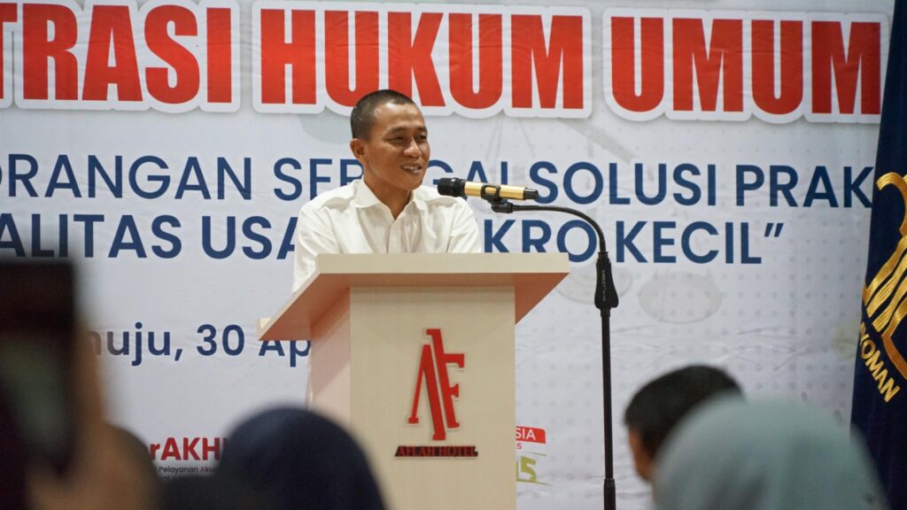 Mamuju, Sulawesi Barat – Kepala Kantor Wilayah (Kakanwil) Kementerian Hukum (Kemenkum) Sulawesi Barat, Sunu Tedy Maranto, menekankan pentingnya menjaga amanah dan integritas dalam menjalankan tugas serta menyoroti dampak positif penerapan transformasi digital terhadap kinerja dan pelayanan masyarakat. Penegasan ini sejalan dengan arahan Menteri Hukum, Supratman Andi Agtas terkait komitmen seluruh pegawai terhadap cita-cita organisasi. Hal tersebut disampaikan Kakanwil pada pelaksanaan Sosialisasi Layanan Perseroan Perorangan yang dilaksanakan di Hotel Afla Mamuju.30 April 2025