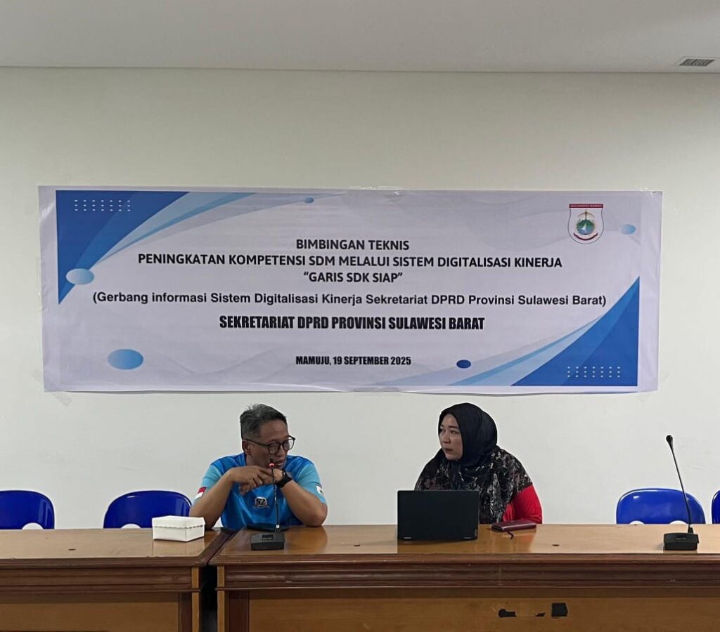 Mamuju —Sekretariat DPRD Sulbar melaksanakan kegiatan Bimbingan Teknis (Bimtek) Peningkatan Kompetensi Sumber Daya Manusia melalui program digitalisasi kinerja bertajuk “Garis SDK Siap” (Gerbang Informasi Sistem Digitalisasi Kinerja Sekretariat DPRD Sulbar). Jumat, 19 September 2025