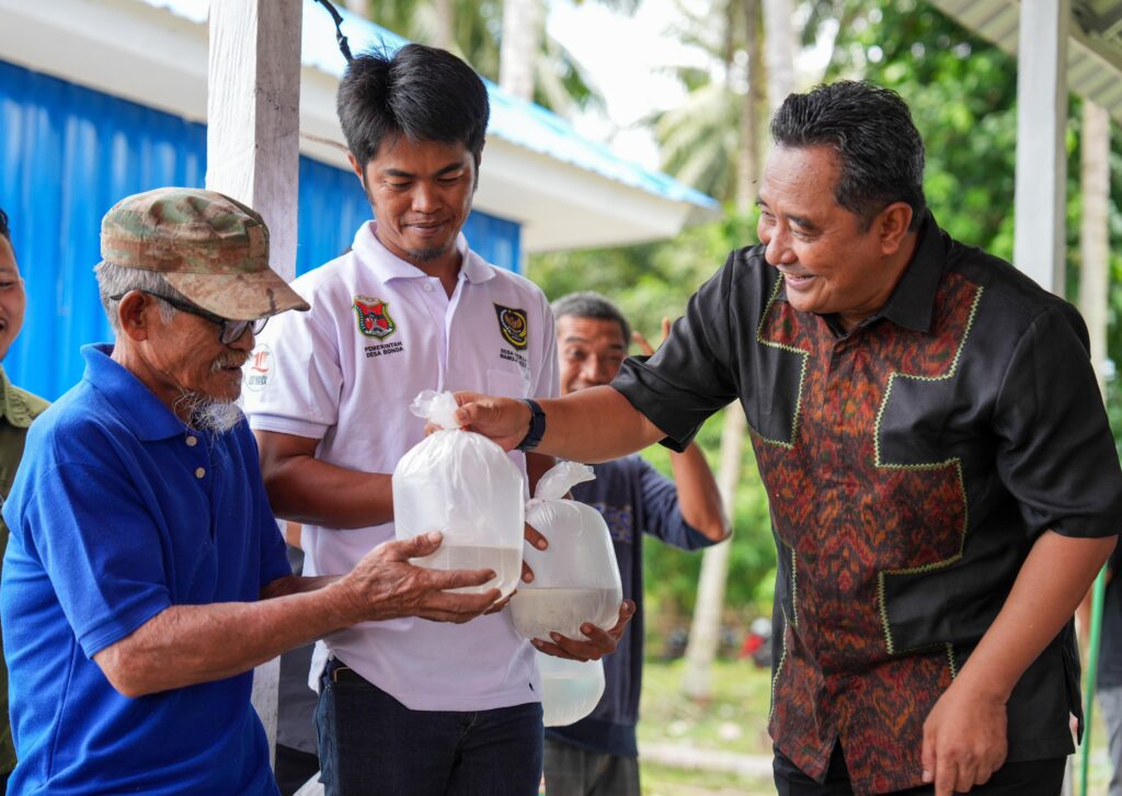 Pada kesempatan itu, PJ Bahtiar juga menyerahkan bantuan benih udang vaname kepada kelompok pembudidaya udang vaname di desa Bonda