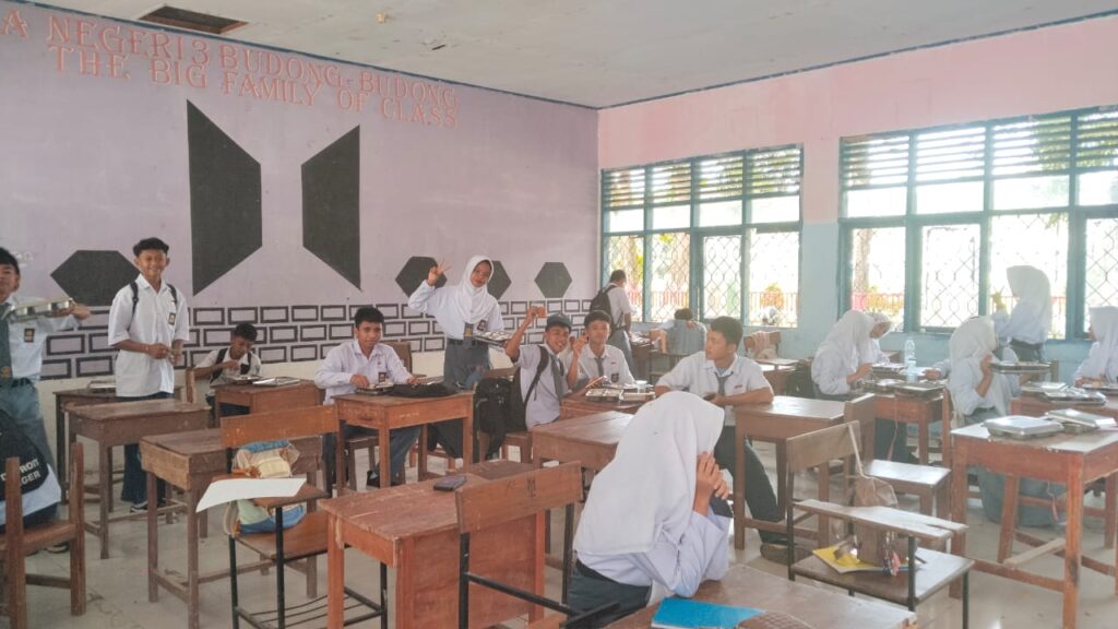Pendistribusian MBG ini disambut antusias oleh ratusan siswa. Program ini bertujuan untuk memberikan dukungan gizi bagi siswa, sekaligus mempererat keakraban di lingkungan sekolah.