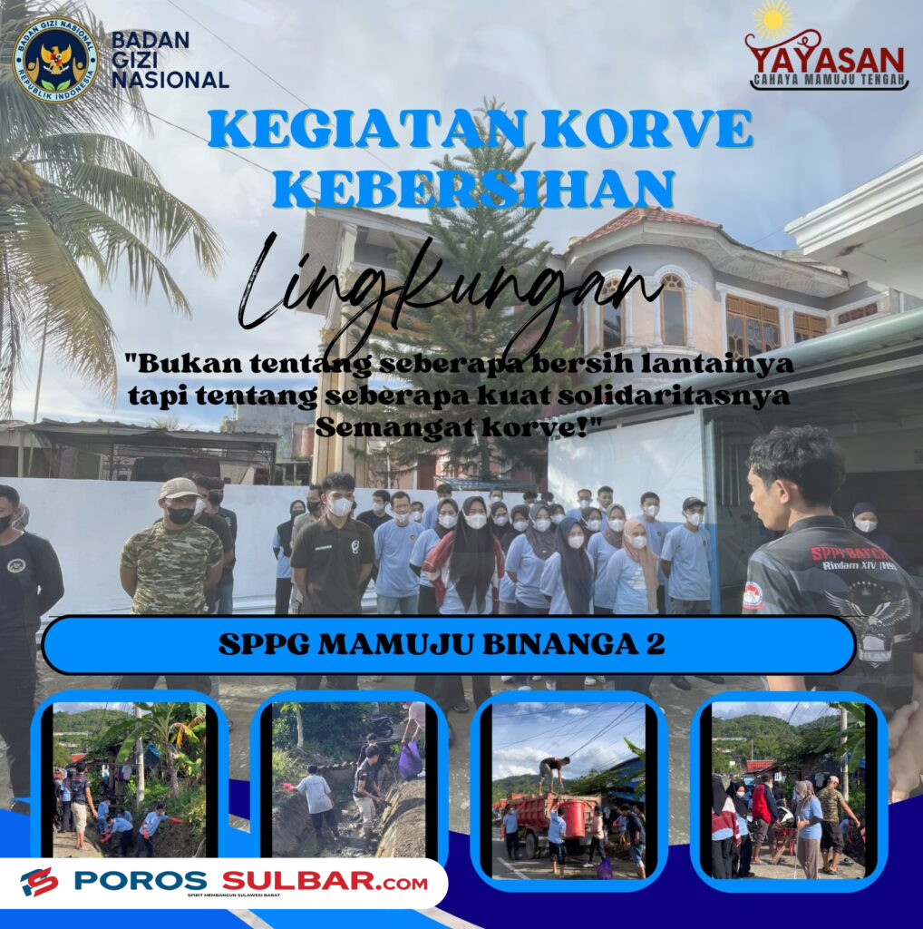 MAMUJU — Satuan Pelayanan Pemenuhan Gizi (SPPG) Binanga 2 Mamuju melaksanakan kegiatan korve kebersihan lingkungan secara serentak pada Sabtu, 7 Februari 2026. Kegiatan ini merupakan tindak lanjut instruksi Presiden RI dalam Rapat Koordinasi Nasional (Rakornas) Pemerintah Pusat dan Daerah Tahun 2026 serta arahan Badan Gizi Nasional (BGN) melalui gerakan SPPG untuk Indonesia ASRI.