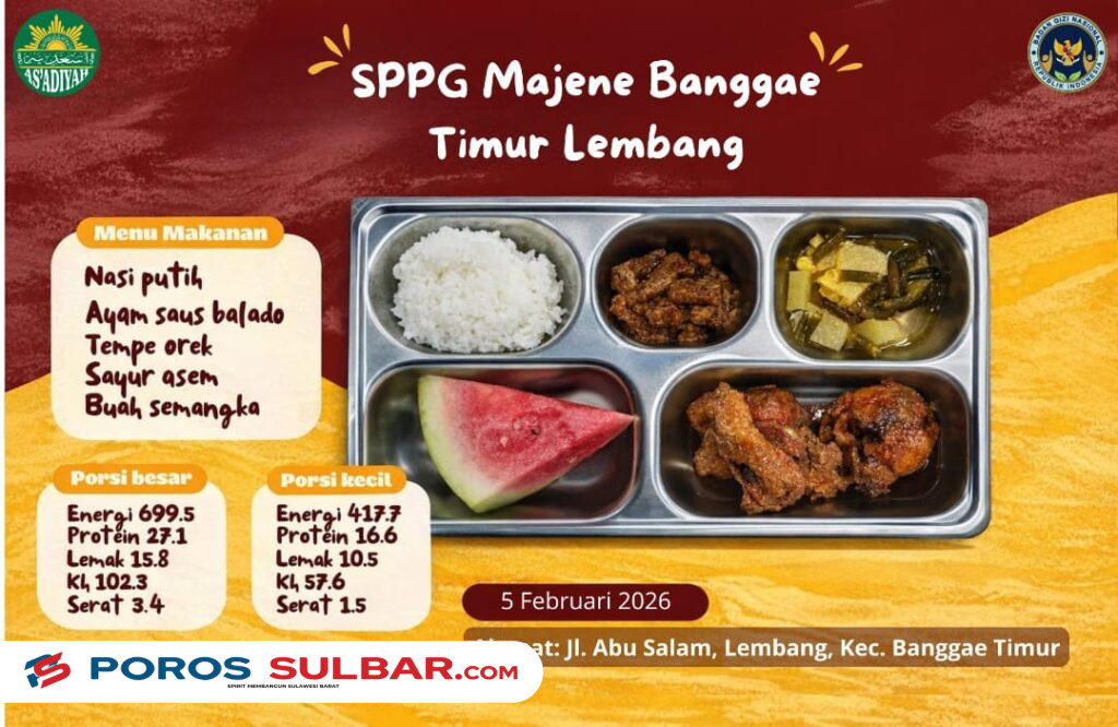 MAJENE — Satuan Pelayanan Pemenuhan Gizi (SPPG) Majene Banggae Timur Lembang kembali menyalurkan menu Makan Bergizi Gratis (MBG) dengan komposisi seimbang yang dirancang untuk memenuhi kebutuhan energi dan zat gizi penerima manfaat.