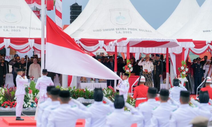 Mamuju – Pasukan Pengibar Bendera Pusaka (Paskibraka) Provinsi Sulawesi Barat sukses melaksanakan tugasnya dalam Upacara peringatan HUT RI ke-80 tingkat Provinsi Sulbar, baik saat pengibaran maupun penurunan bendera Merah Putih di Anjungan Pantai Manakarra, Minggu 17 Agustus 2025.