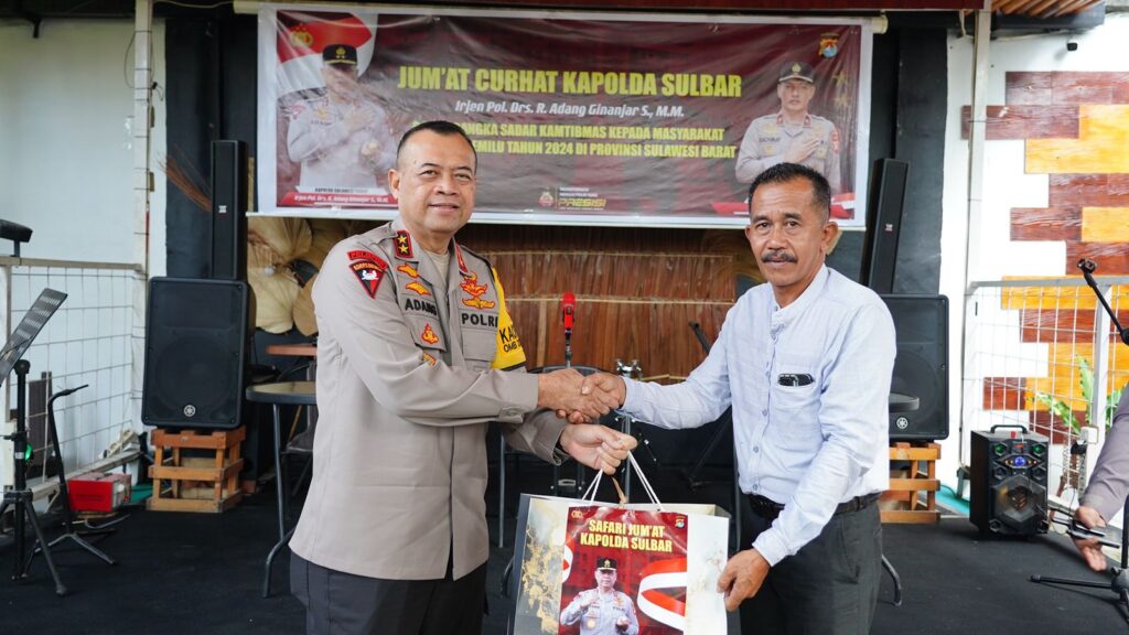 Polda Sulbar – Dihujani berbagai aspirasi mulai dari saran, pesan hingga apresiasi dari masyarakat Kelurahan Mamunyu dalam acara Jumat curhat, Kapolda Sulbar Irjen Pol Adang Ginanjar menyatakan sikapnya bahwa akan bekerja maksimal untuk mengatasi persoalan kamtibmas yang ada di Sulawesi Barat khususnya di masa Pemilu 2024, Jumat (26/1/24) di cafe ruang rindu.