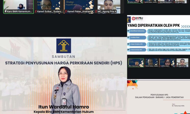 Mamuju, 7 Oktober 2025 – Kantor Wilayah Kementerian Hukum Sulawesi Barat menghadiri Bimbingan Teknis Strategi Penyusunan HPS secara virtual.