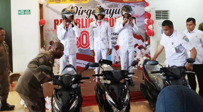 Ketiga anggota Paskibraka yang mendapatkan hadiah motor itu adalah Kristo Dimara, Afgan Sapulete, dan Frans Beto Kolowa.