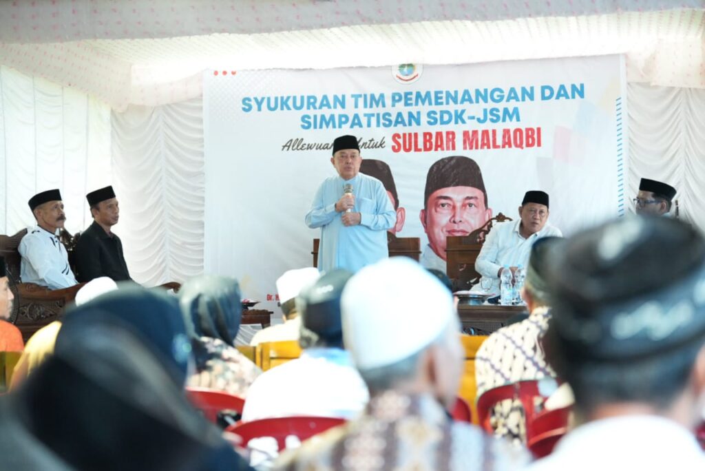 POLEWALI MANDAR – Wakil Gubernur Sulawesi Barat menghadiri Syukuran tim pemenangan dan simpatisan Suhardi Duka dan Mayjen TNI (Purn) Salim S Mengga (SDK-JSM), di Desa Alu, Kecamatan Alu, Kabupaten Polewali Mandar. Minggu, 27 April 2025.